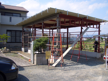 | ■地域:愛知県豊川市 ■家族構成:大人2人 ■構造・工法:鉄骨造 1階建 ■構造材:重量鉄骨 ■基礎:ベタ基礎 ■規模:地上1階 ■床面積:37.65m2(約12坪) ■延床面積:37.65m2(約12坪) 外壁:成形角波トタン | ■床:収納部屋:フロアー仕上げ (パルフロア) ■屋根:ルーフデッキ ペフ付0.6 ■施工:有限会社 山本鉄建 ■竣工:2011年8月 ■大まかな費用:お問合せください |